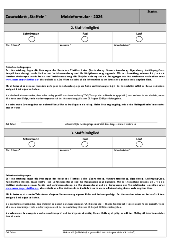 Zusatzblatt Staffeln